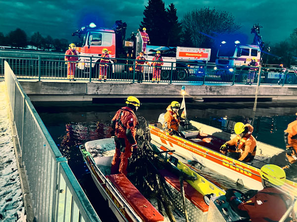 - Die DLRG ist sehr präsent. Boote werden über einen eigenen Kran in die Gewässer eingesetzt. Inspektion der Deiche und Entfernung von angespülten Ästen und Bäumen. Helfer zum Teil brusthoch im Wasser. Eine sehr gute technische Ausstattung und hochmotivierte Mitglieder. Es wird deutlich, dass sich diese Hilfsorganisation vom Bademeister-Image zur spezialisierten Wassertruppe entwickelt hat. Das schafft Vertrauen und Sicherheit.