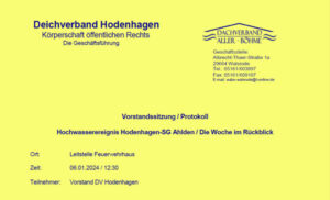 Zwischenbericht des Deichverbands Hodenhagen vom 05.01.2024, 22:00 Keine akuten Auffälligkeiten/Probleme. THW, DLRG, Feuerwehren deutlich reduziert Deiche unveränderter stabiler Zustand Allgemeine Anmerkungen zum Pegel Aller an der Ahldener Brücke: Vor etwa 9 Monaten hat der Blitz eingeschlagen. Dadurch wurden Teile der Messtechnik zerstört. Die Daten des Pegels waren daraufhin nur sporadisch erhältlich. Am 28.12.2023 hat das […]