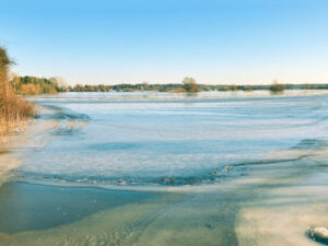 Nach einigen kalten Tagen und Nächten frieren die Wasserflächen überall langsam ein. Wie hier in Ahlden und am Serengeti-Park an der Meisse.